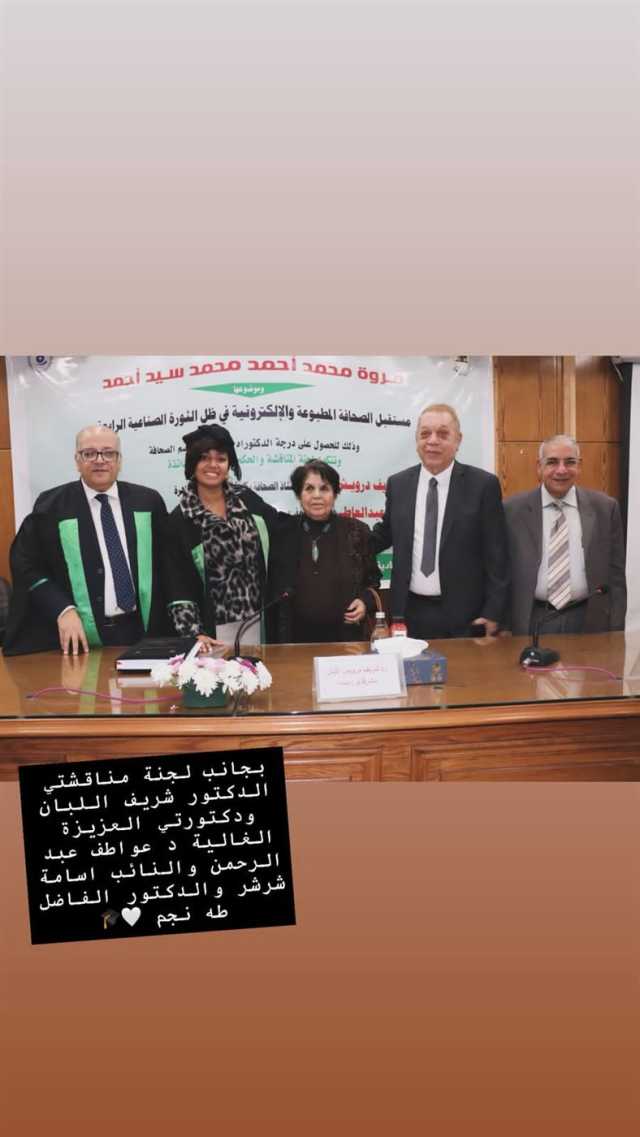 وترأس لجنة المناقشة والحكم الدكتور شريف درويش اللبان أستاذ الصحافة بكلية الإعلام جامعة القاهرة، مشرفًا ورئيسًا، وشارك في المناقشة كل من: الدكتور طه عبدالعاطي نجم أستاذ الصحافة بجامعة الإسكندرية، والدكتور سماح عبدالرزاق الشهاوي أستاذ الصحافة المساعد بكلية الإعلام جامعة القاهرة.