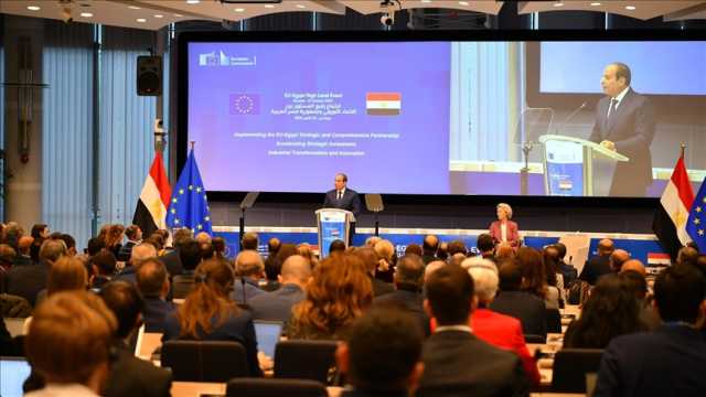 كما مثلت استثمارات الاتحاد الأوروبي في مصر نحو 32 بالمئة من إجمالي الاستثمار الأجنبية في 2024، وفق ما ذكره السيسي.