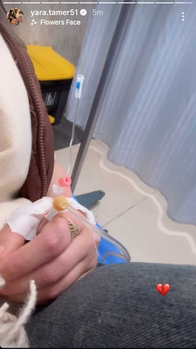 معلقه محاليل.. يارا تامر تشارك جمهورها فيديو من المستشفى