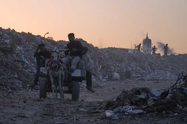 وفي مشهد آخر، تحمل نساء أطفالهنّ وهنّ يصعدن إلى عربات تجرّها الحمير. وعلى مسافة طويلة، يمتدّ مكبّ مليء ببقايا محترقة ومشوّهة لسيارات وحافلات دمّرها القصف. ومع منع دخول مركبات جديدة إلى القطاع، بات الوصول إلى العديد من المناطق ممكنًا فقط عبر وسائل نقل غير آمنة.