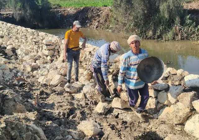 تابع اللواء دكتور علاء عبد المعطي، محافظ كفر الشيخ، أعمال تبطين وتكاسي مصرف أبو خشبة بقرية الحصفة بمركز الرياض، بطول 1200 متر.