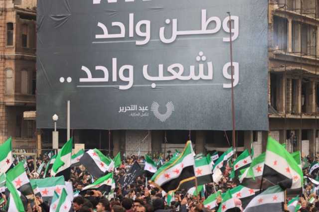 احتشد الآلاف في ساحة سعد الله الجابري وسط مدينة حلب، التي تعيش عامها الأول بدون النظام السابق بعد سنوات طويلة من الحرب والانقسام.