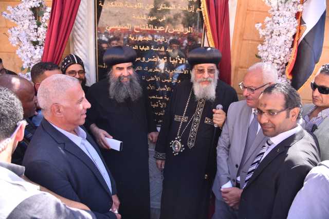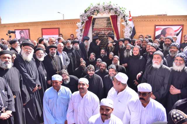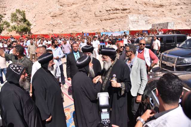 البابا يزور دير مارمينا المعلق بجبل أبنوب ويلتقي مجمع الرهبان | صور
