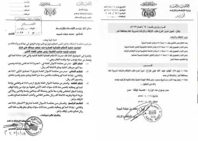 وحسب مصادر حقوقية رغم تلك الاحكام، فإن وزير الأوقاف شبيبة يفاجئ الجميع بتعيينه مديرًا لأوقاف المخا، في تحدٍ لسلطة القضاء وازدراء واضح لسيادة القانون.