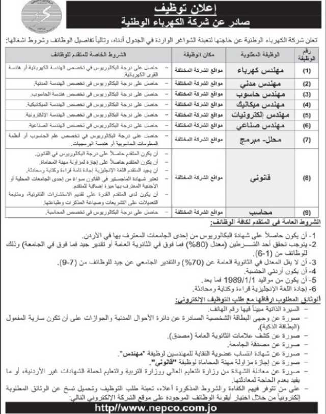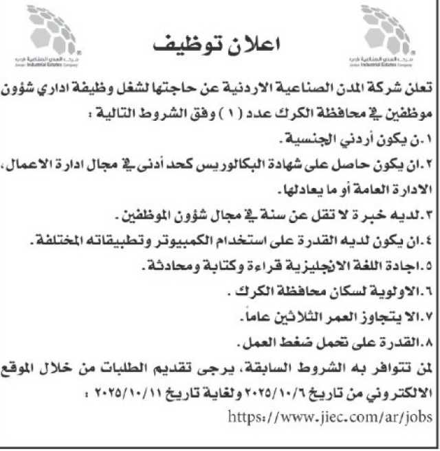 صراحة نيوز- أعلنت عدد من المؤسسات الحكومية اليوم الاثنين عن توفر شواغر وظيفية لديها.