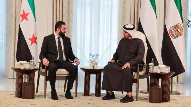 ابن زايد يستقبل الشرع في زيارته الرسمية الأولى إلى الإمارات