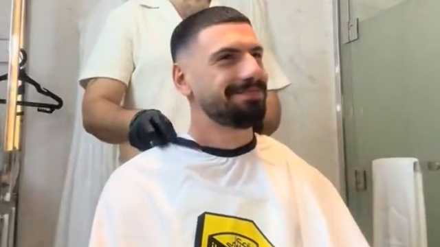 حرص أحد الحلاقين على ممازحة التركي ميريح ديميرال، مدافع الأهلي، خلال قيامه بحلق شعره.