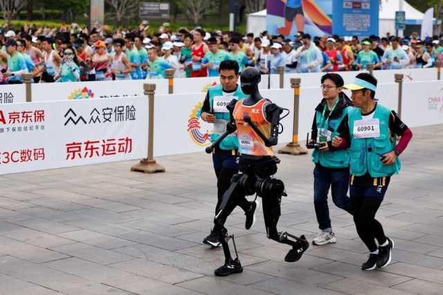 وانضم نحو 20 روبوت ثنائي الأقدام إلى أكثر من 10 آلاف إنسان في السباق الذي يمتد إلى 21 كيلومتراً. وفصلت حواجز مسار عدو الروبوتات عن منافسيهم من البشر.