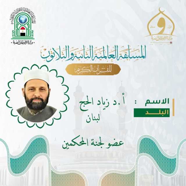 أعلنت وزارة الأوقاف المصرية عن التعريف الرسمي بأعضاء لجنة التحكيم في المسابقة العالمية الثلاثين للقرآن الكريم، وفي مقدمتهم الأستاذ الدكتور زياد الحج، أحد أبرز أعلام القراءات في لبنان والعالم العربي، وصاحب مسيرة علمية حافلة تمتد لأكثر من ثلاثة عقود في خدمة القرآن الكريم وعلومه.