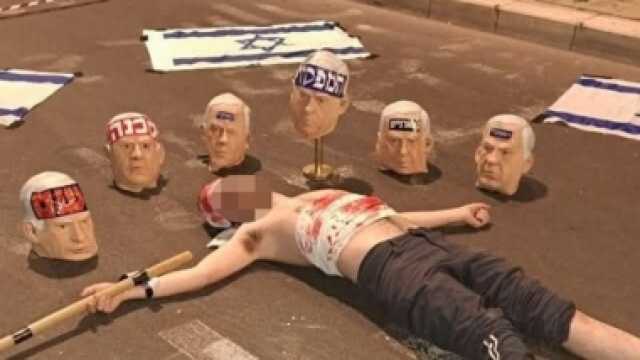 نشر حزب الليكود الإسرائيلي المتطرف الليلة الماضية صورة من تظاهرة في كابلان (تل أبيب) “يافا” المحتلة، يظهر فيها متظاهر في عرض فني محاط بـ”رؤوس مقطوعة” يُزعم أنها لرئيس حكومة الكيان الإسرائيلي بنيامين نتنياهو.