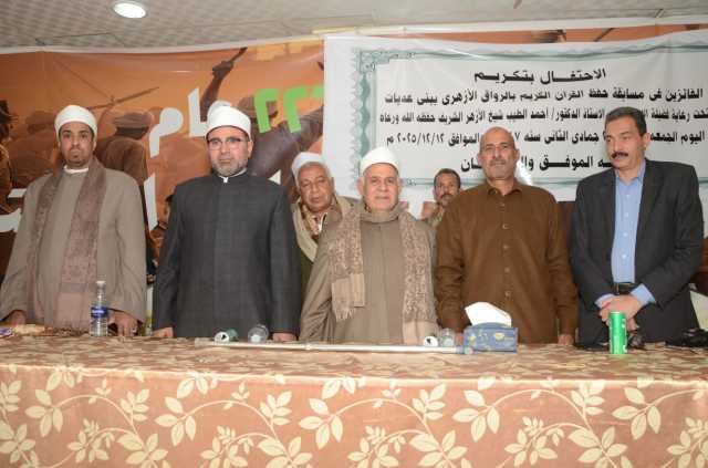 شهدت قرية بني عدي بمحافظة أسيوط مشهدًا مهيبًا لتكريم كوكبة من الفائزين في المسابقة الكبرى لـ حفظ القرآن الكريم خلال احتفالية كبرى، والتي أشرف عليها الجامع الأزهر، ونظمتها جمعية بني عديات، وذلك تحت رعاية كريمة لفضيلة الإمام الأكبر الأستاذ الدكتور أحمد الطيب، شيخ الأزهر الشريف.