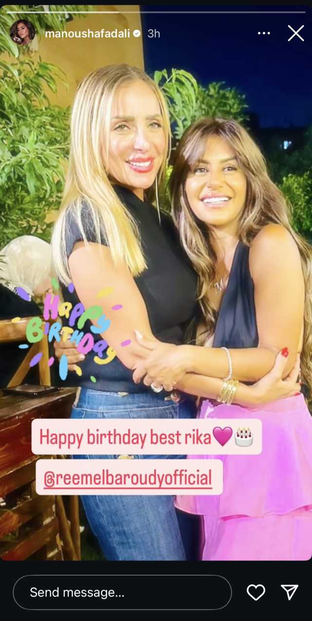 منة فضالي تهنئ ريم البارودي بعيد ميلادها