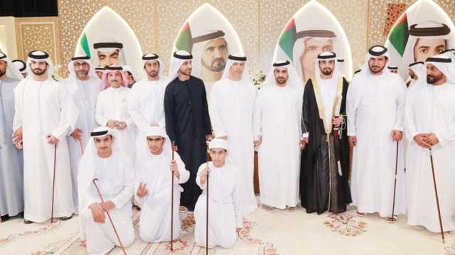 وتخللت الحفل أهازيج شعبية من التراث الإماراتي وفقرات فنية لفرقة الفنون الشعبية، قدمتها فرق المذاريب الحربية ابتهاجاً بالمناسبة السعيدة.