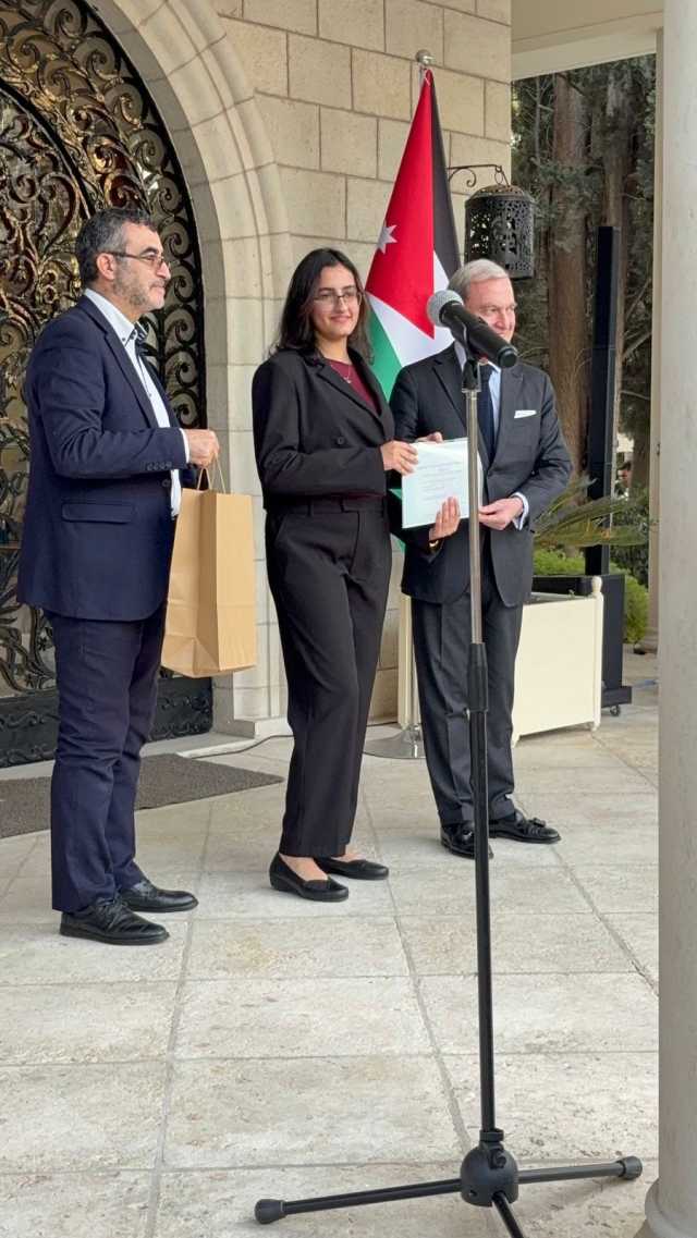 السفير الفرنسي في عمان يكرم الطالبة لمار الراميني لتفوقها بامتحان اللغة الفرنسية المدرسي