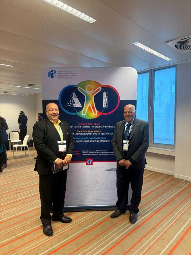 قدم خلف الزناتي نقيب المعلمين ورئيس اتحاد المعلمين العرب، ورقة عمل للمجلس التنفيذى لمنظمة "الدولية للتربية" أكبر منظمة عالمية لنقابات المعلمين، المنعقد حاليا بالعاصمة البلجيكية بروكسل.