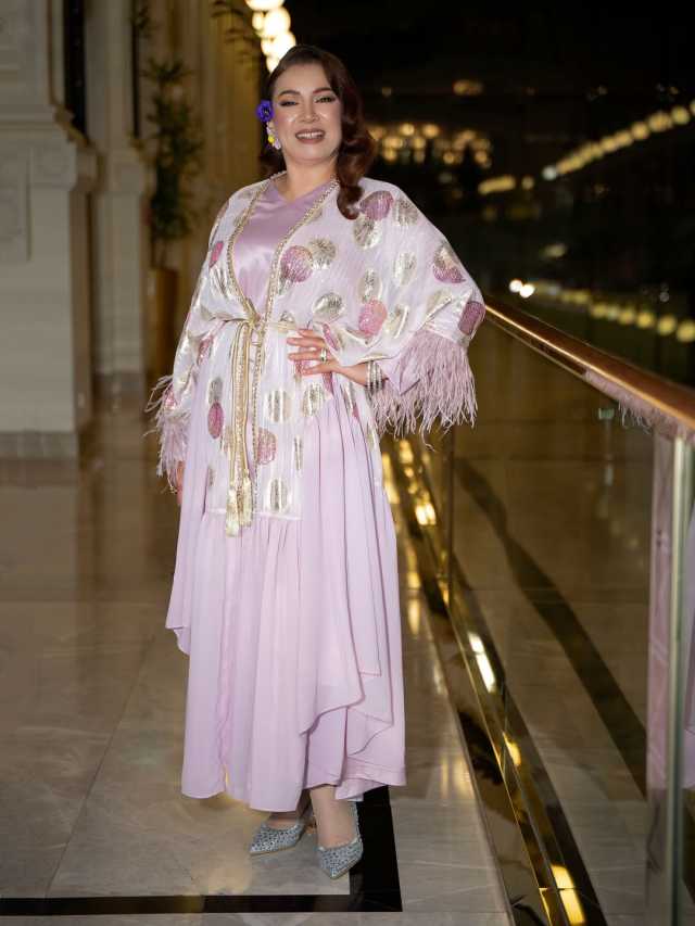 وتألقت انتصار باطلالة ملفتة مرتدية فستاناً باللون اللافندر و نسقت معه شال بنفس اللوم المميز.