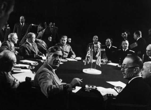 وفي هذا الوقت، انعقد مؤتمر بوتسدام في ألمانيا بين 17 يوليو/تموز و2 أغسطس/آب 1945، وجمع قادة الحلفاء الكبار: جوزيف ستالين عن الاتحاد السوفياتي، وهاري ترومان رئيس الولايات المتحدة، وونستون تشرشل الذي خَلفه كليمنت أتلي بعد خسارته الانتخابات البريطانية أثناء المؤتمر، وعن الصين زعيم الحكومة تشيانغ كاي شيك.