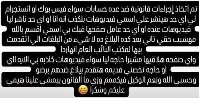 اقرأ أيضاًبلاغ جديد ضد البلوجر هدير عبد الرازق وطليقها بتهمة نشر فيديوهات إباحية