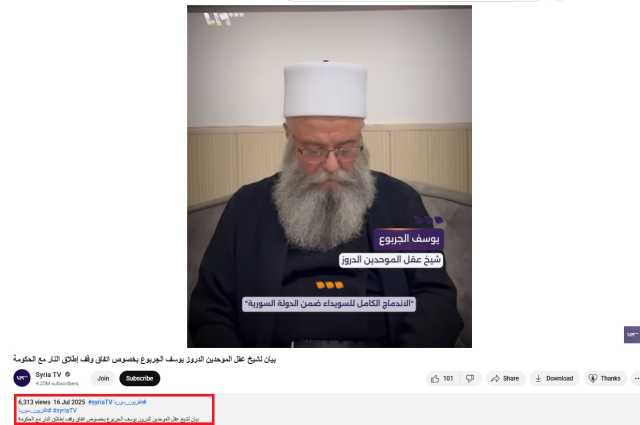 دبي، الإمارات العربية المتحدة (CNN)-- تداولت حسابات مقطع فيديو بزعم أنه للحظة إعلان الشيخ يوسف جربوع، أحد شيوخ مشيخة عقل المسلمين الموحدين الدروز في سوريا، بعد "عزل" الزعيم الروحي للطائفة الدرزية حكمت الهجري.