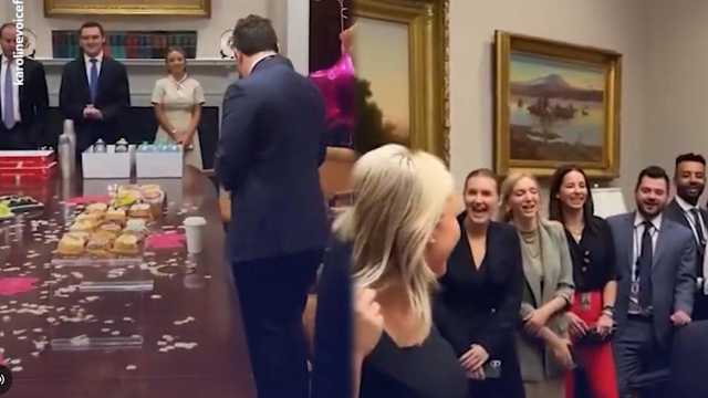 أظهرت مشاهد كارولين ليفيت المتحدثة باسم البيت الأبيض ترقص بين أفراد فريقها أثناء الاحتفال بعيد ميلادها الـ 28.