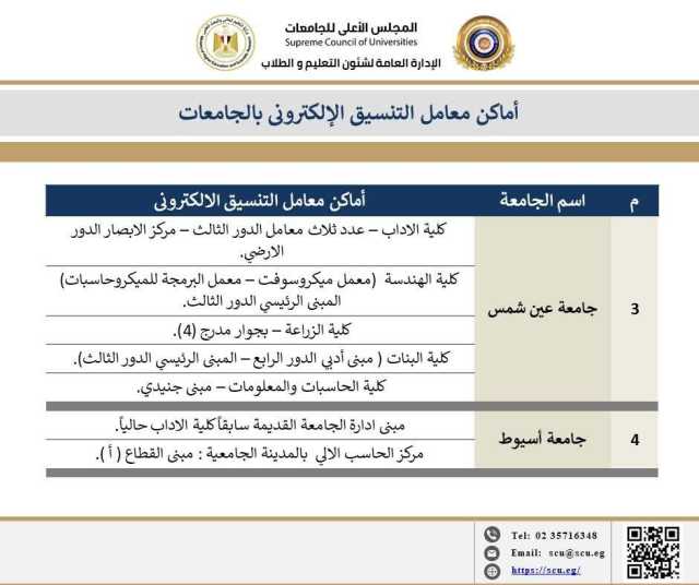 ويمكن للطلاب الذين يحتاجون هذه الخدمة التوجه إلى أقرب معمل حاسب آلي متاح بالجامعات الحكومية للاستفادة من هذه الخدمات، التي تُقدم مجانًا وتهدف إلى مساعدة الطلاب وأولياء الأمور خلال فترة التنسيق.