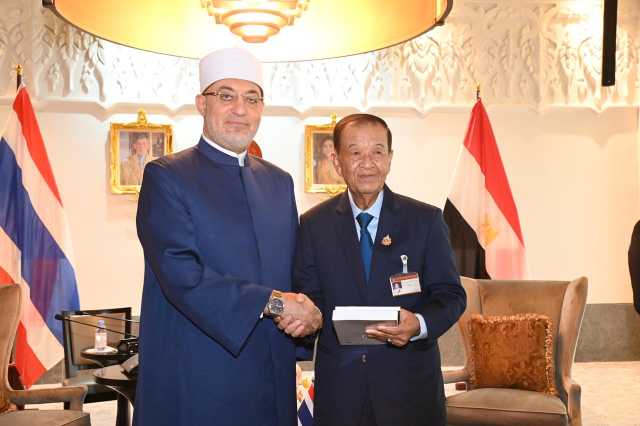 مفتي الجمهورية يلتقي رئيس البرلمان التايلاندي ويؤكد موقف مصر من القضية الفلسطينية.. صور