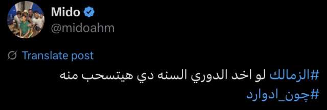 أثار أحمد حسام “ميدو”، نجم الزمالك السابق، جدلاً واسعاً عبر مواقع التواصل الاجتماعي بعد تغريدة نشرها على حسابه الشخصي بموقع “إكس” (تويتر سابقًا)، أكد خلالها أن فريق الزمالك حتى لو تمكن من حصد لقب الدوري الممتاز هذا الموسم، فسيتم “سحب” البطولة منه.