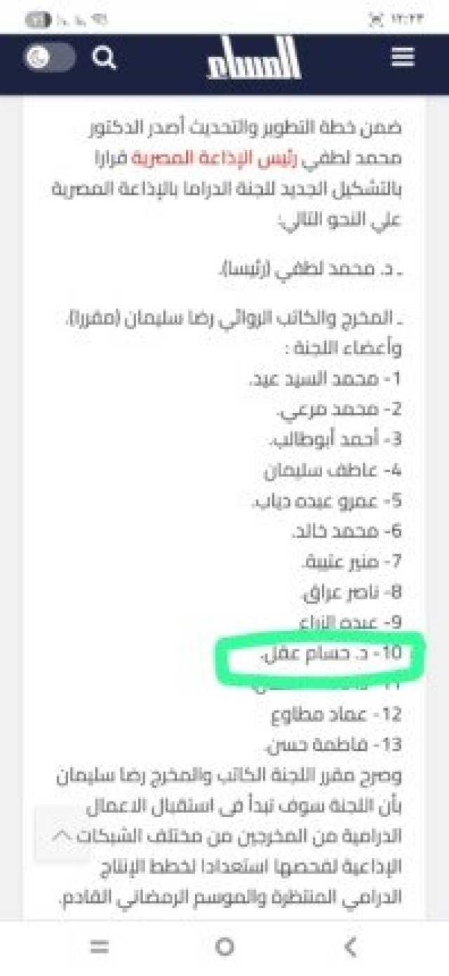 لكن على الفور، تداول المغردون صورا تجمع حسام عقل مع التشكيل الجديد لهيئة الدراما، وكذلك نسخة من القرار الذي يتضمن تعيينه.