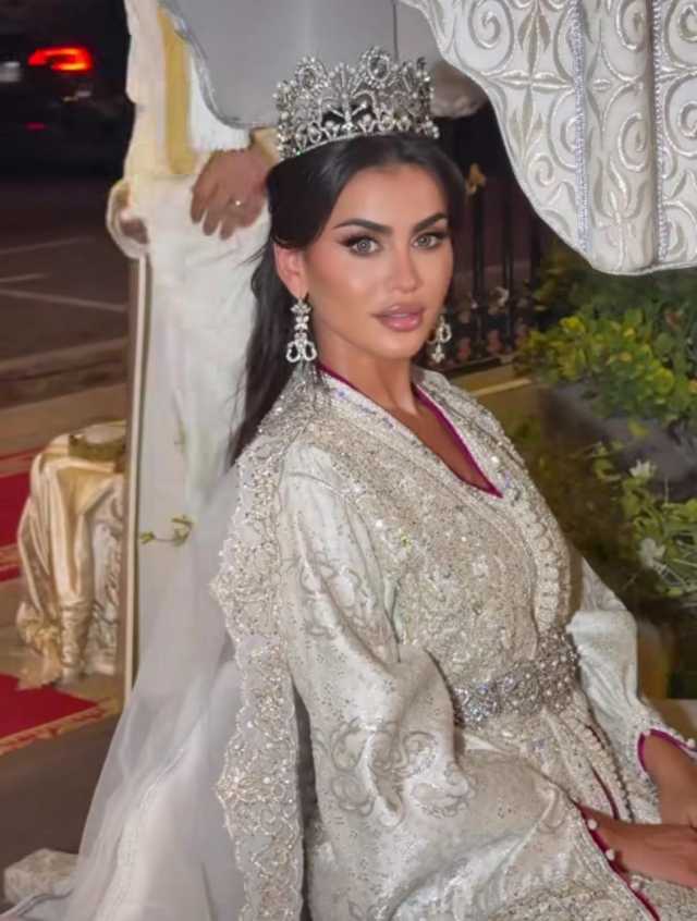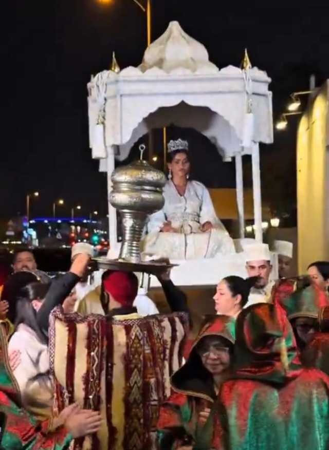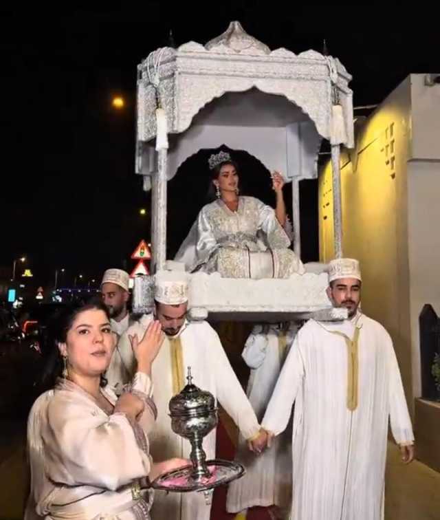 وجاء ذلك ضمن احتفالات زفافها، حيث تألقت بالقفطان المغربي الفاخر الذي تزين بتطريزات راقية، بينما تم حملها على الأعناق في الهودج، كما هو متعارف عليه في الزفة المغربية، مما أثار تفاعلًا بين رواد مواقع التواصل.