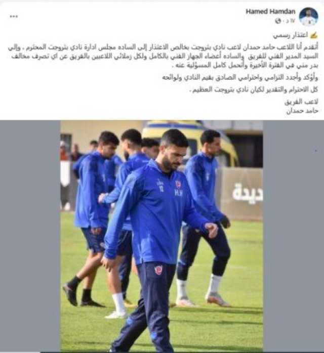 حرص اللاعب حامد حمدان، نجم فريق بتروجت، على توجيه رسالة اعتذار إلى ناديه ومجلس الإدارة وأعضاء الجهاز الفني بالنادي، بعد فشل انتقاله للزمالك، خلال الفترة الماضية.