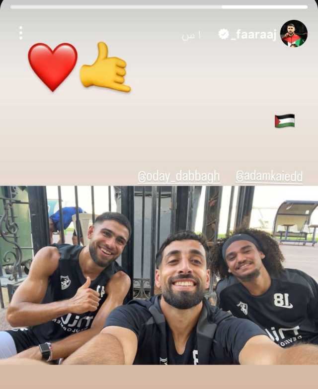 عمر فرج ينشر صورة له مع ثنائي الزمالك الفلسطيني