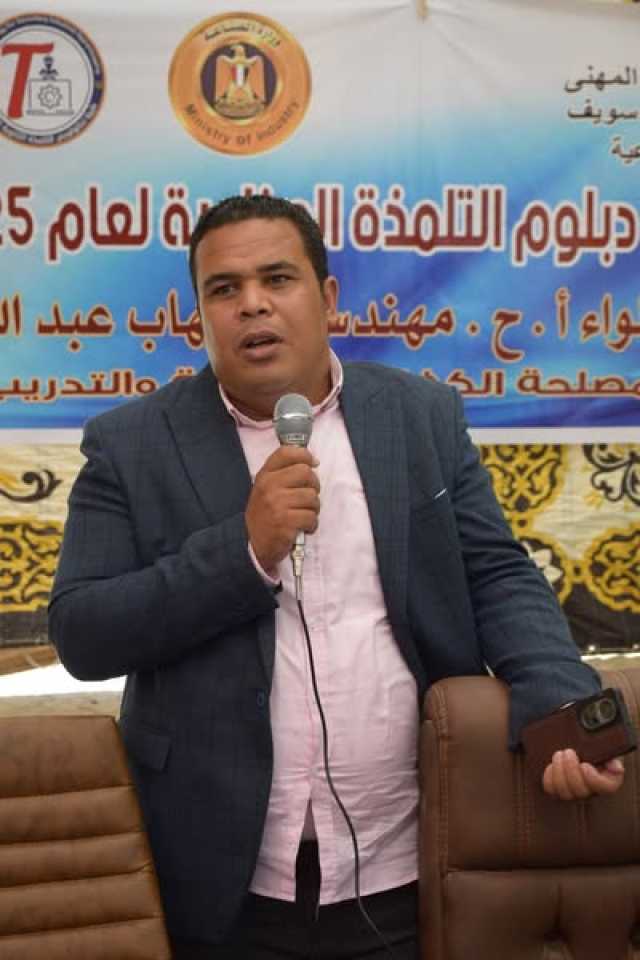ح. مهندس إيهاب عبد الله الشناوي رئيس مصلحة الكفاية الإنتاجية بوزارة الصناعة. جاء ذلك بحضور المهندس، عثمان محمد أحمد عثمان مدير المجمع والدكتور، محمود الزوكي ممثلاًعن مجلس إدارة طيبة تكنولوجي والمهندسة منال جمعة أمين مدير عام منطقة شمال الصعيد ومسئولي وقيادات المنطقة ، صابرين عبد الرحمن مدير إدارة الرعاية الاجتماعية بالمنطقة ومسئولو منطقة شمال الصعيد : أحمد عبد المحسن، أحمد صادق وحمادة عبد الحكيم وعدداً من القيادات المحلية والطبيعية والإعلامية بمحافظة بنى سويف ، وأولياء أمور الخريجين .