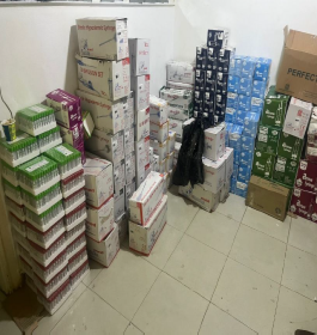 تمكنت الإدارة العامة لشرطة التموين والتجارة الداخلية بقطاع الأمن الاقتصادي بالتنسيق مع الجهات المعنية عقب تقنين الإجراءات من ضبط مليوني قطعة مستلزمات طبية منتج نهائى "قفازات طبية ، لاصق طبى ، سرنجات ، أجهزة وريد ، أجهزة محاليل طبية مختلفة" مجهولين المصدر ، بداخل مخزن لتجارة المستلزمات الطبية "غير مرخص" كائن بدائرة قسم شرطة السيدة زينب بالقاهرة .