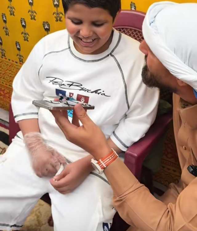 وفي لقطات أخرى، ظهر موارث وهو يرقص ويتفاعل مع زواره بابتسامة عريضة، ما حوّل بساط الشاي الصغير إلى مساحة مليئة بالدفء والفرح، ورسالة أمل من طفل يواجه المرض بقوة وحب للحياة.