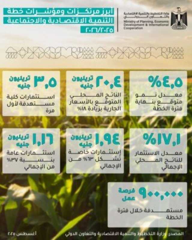 4.5% معدل نمو.. إعلان خطة التنمية الاقتصادية والاجتماعية للعام المالي 2025/2026
