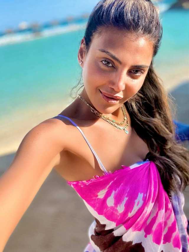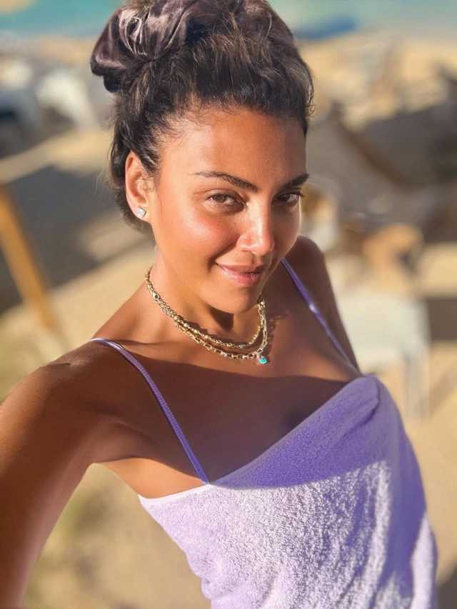 ونسّقت ريهام حجاج إطلالتها مع إكسسوارات ناعمة من السلاسل الذهبية القصيرة التي زادت من أنوثتها ورقتها، فيما اعتمدت مكياجًا خفيفًا يكشف عن ملامحها الجذابة ببساطة وبسحر طبيعي، مع تسريحة شعر مرفوعة بعفوية تتناسب مع أجواء البحر.