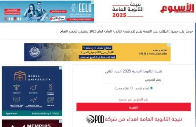 برقم الجلوس.. رابط الاستعلام عن نتيجة الثانوية العامة 2025 الدور الثاني عبر بوابة الأسبوع
