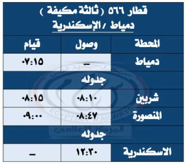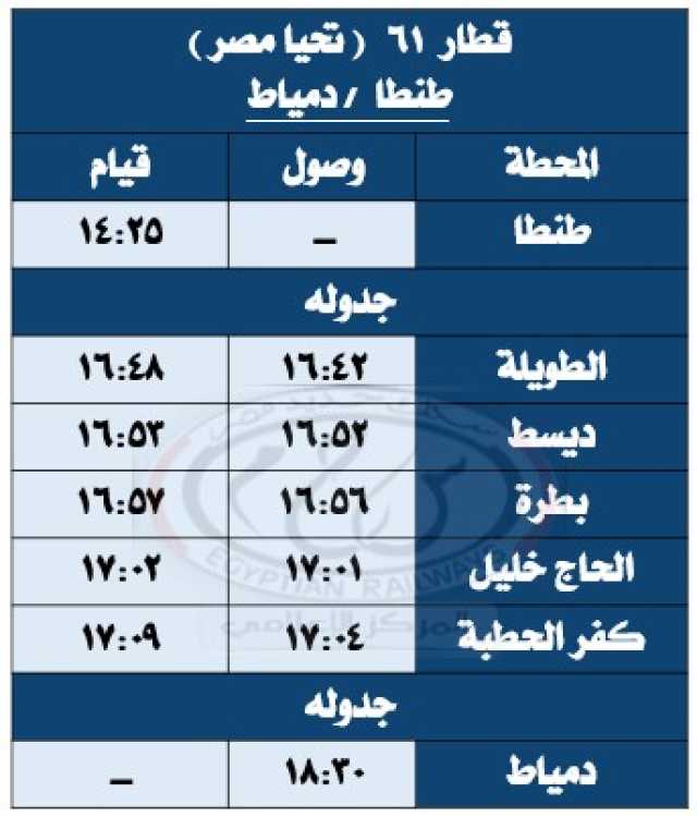 ويترتب على ذلك تعديل جداول قطارات أرقام ( 566 – 61 – 489 – 68 – 37 ) طبقاً للجداول المرفقة .