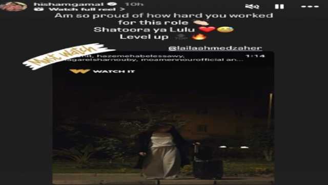 وفي هذا السياق، وجه هشام جمال، عبر حسشابها الرسمي بموقع تداول الصور والفيديوهات «إنستجرام» رسالة لـزوجته ليلي زاهر، قائلا: «فخور جدًا بالمجهود اللي عملتيه في الشخصية دي، شطورة يا لولي، إلى الأمام»، الأمر الذي نال إعجاب قطاع كبير من محبيهم.