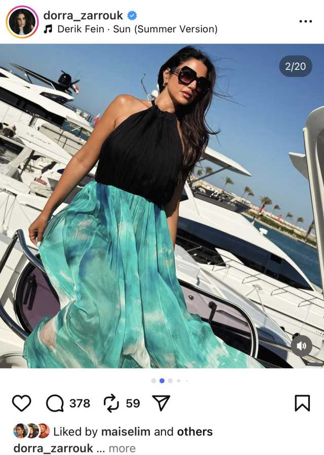 وظهرت درة بإطلالة جذابة لافتة على متن يخت مرتدية فستانا باللون الأسود المشجر، ما حاز على إعجاب متابعيها.