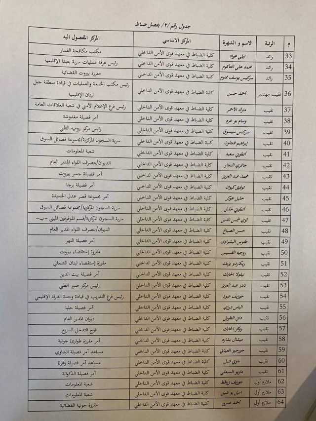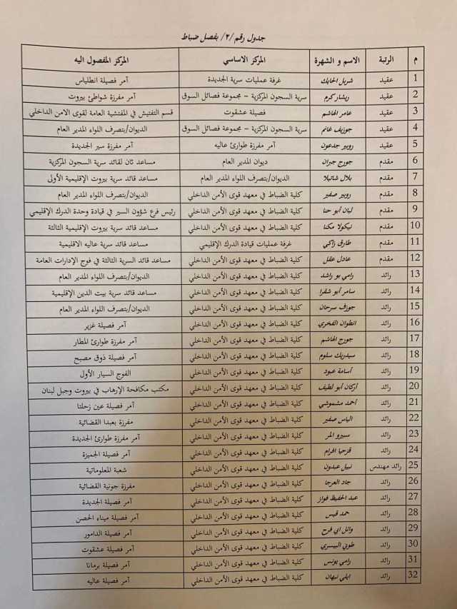 صدرت مؤخراً تشكيلات جديدة لضباط قوى الأمن الداخلي وذلك في مختلف المراكز الأمنية.
