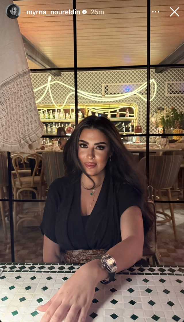 وظهرت ميرنا نور الدين بإطلالة جذابة لافتةً من أحد المطاعم، وحازت الصورة على إعجاب متابعيها.