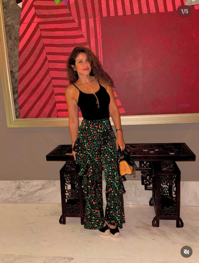 تألقت هيدي كرم في الصور بإطلالة جمعت بين الأناقة والبساطة، حيث ظهرت مرتدية توب ذا أكمام مكشوفة باللون الأسود ونسقت معه بنطلون ملون.