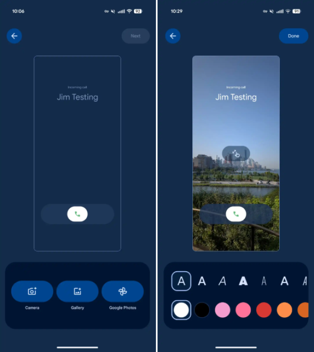 ويتيح التحديث للمستخدم اختيار صورة جديدة من الكاميرا، أو المعرض، أو Google Photos، مع إمكانية قصها وضبطها، ثم تحديد نمط خط ولون لاسم المتصل يظهر أعلى الشاشة.