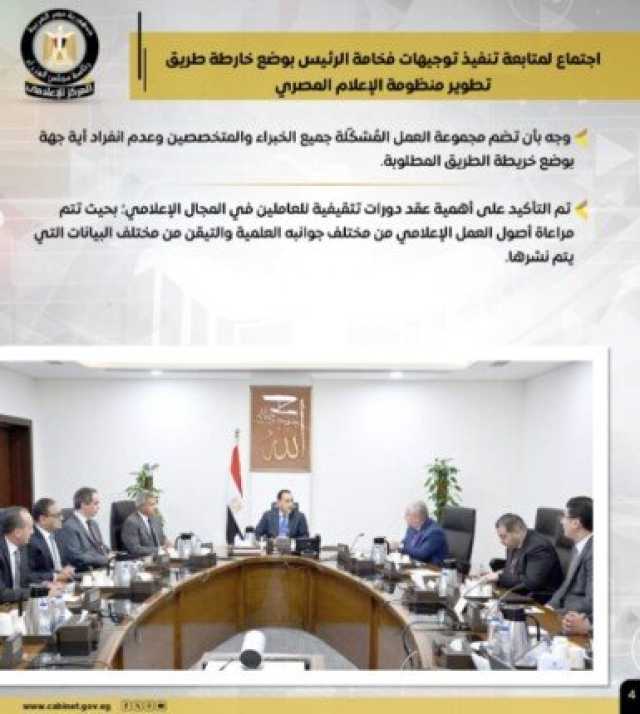 كما عقد اجتماعًا لمتابعة تنفيذ التوجيهات الرئاسية بوضع خارطة طريق تطوير منظومة الإعلام المصري، موجهًا بأن تضم مجموعة العمل المُشكّلة جميع الخبراء والمتخصصين، وعدم انفراد أية جهة بوضع هذه الخارطة، مؤكدًا أهمية عقد دورات تثقيفية للعاملين في المجال الإعلامي.