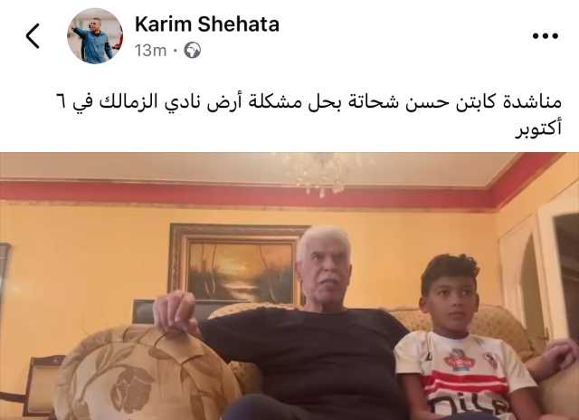 شارك كريم حسن شحاتة مقدم برنامج كورة، فيديو لوالده حسن شحاتة عبر حسابه الشخصي بموقع فيسبوك، يناشد فيه الدولة بترك أرض نادي الزمالك.