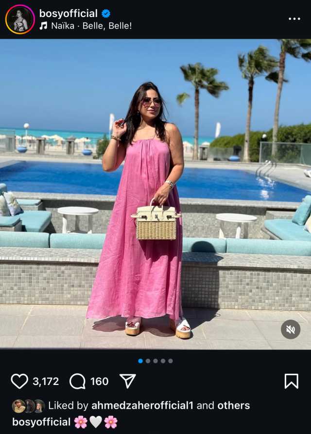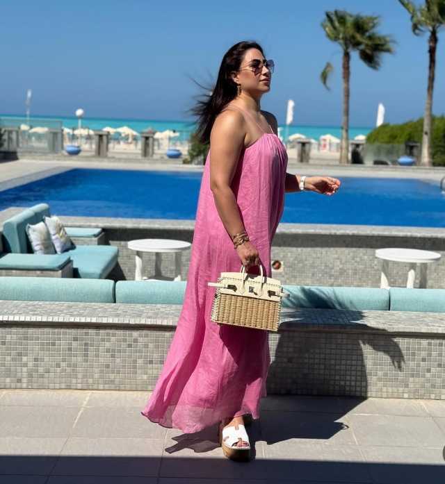 بفستان وردي..أحدث ظهور لـ بوسي من إجازتها الصيفية