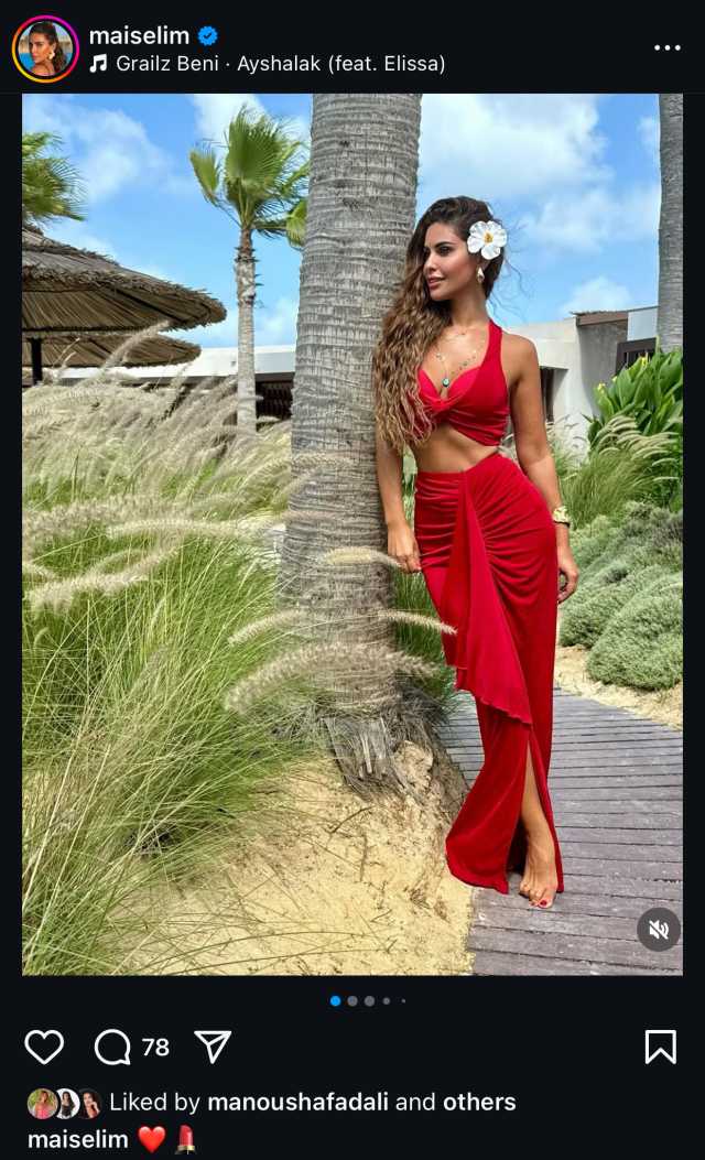 كلمات دلالية: مي سليم انستجرام فستان الأحمر المكياج