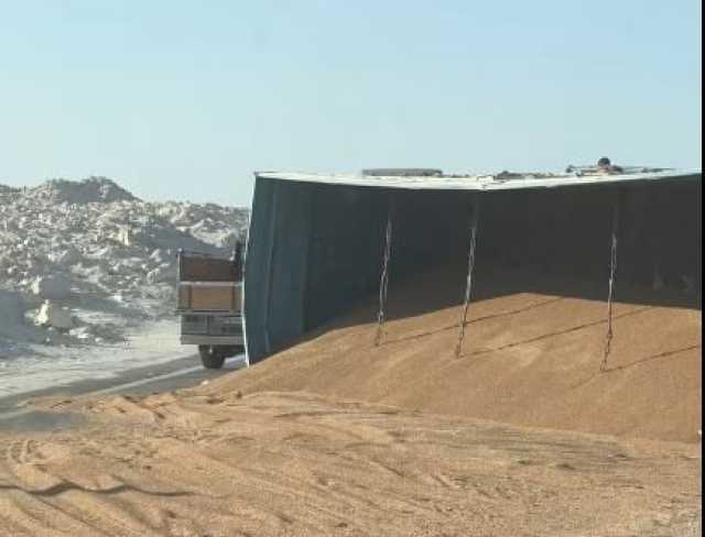 كلمات دلالية: حادث انقلاب شاحنة القمح التمويني
