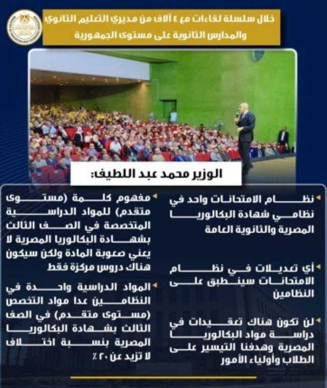 كلمات دلالية: الثانوية العامة وزير التربية والتعليم المنظومة التعليمية شهادة البكالوريا المصرية البكالوريا نظام البكالوريا المصرية وزیر التعلیم إلى أن
